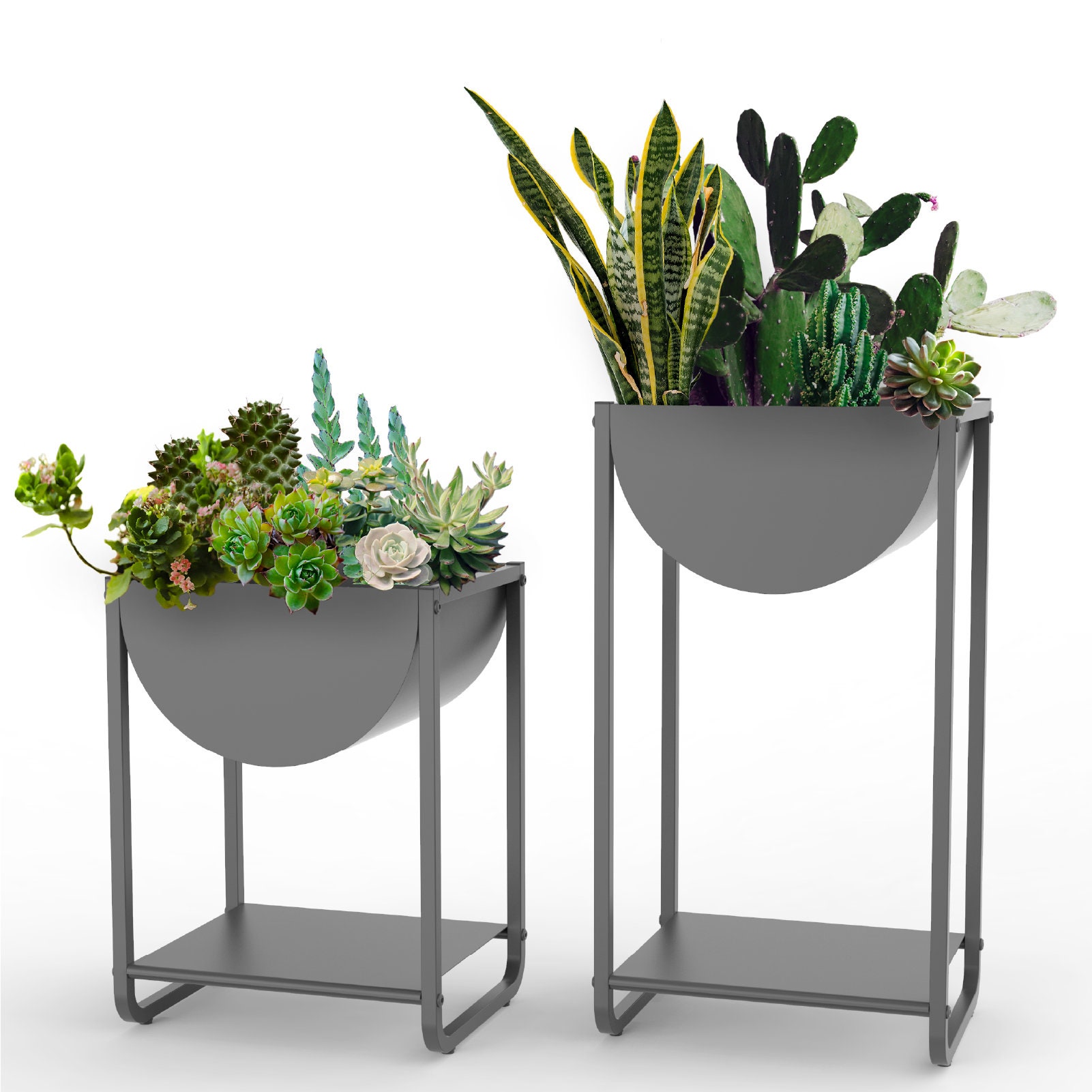 Closeout Sale 2 Modern Half Moon Shape Metal Planter Flower Etsy